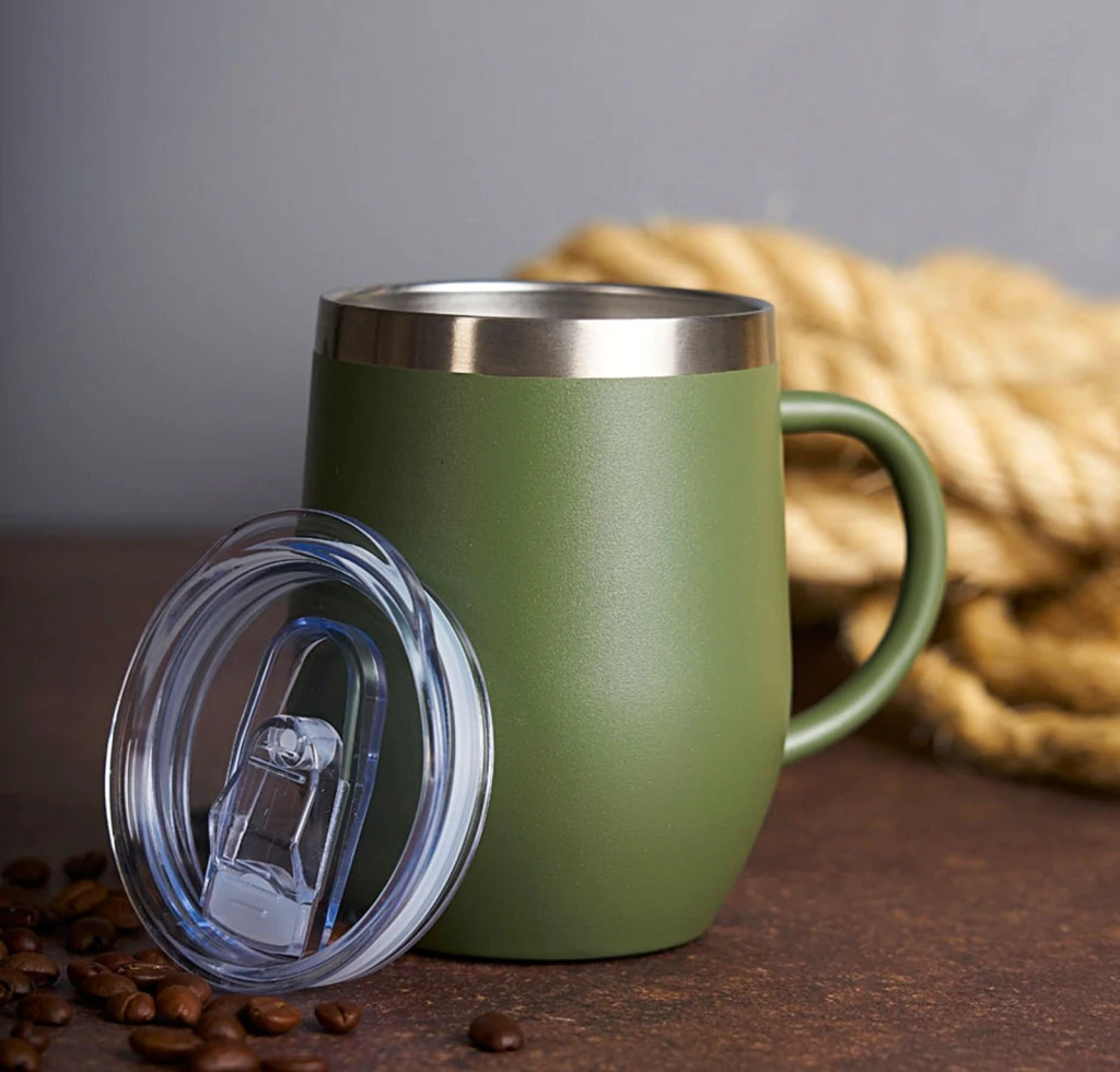 Descrição: Caneca térmica de inox com capacidade de 350ml, material livre de BPA.